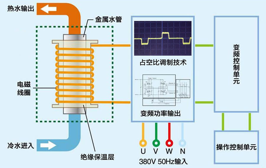3.高效,高頻電磁渦流制熱,熱轉(zhuǎn)化效率高,升溫速度快,出水溫度能快速達(dá)到60度左右。